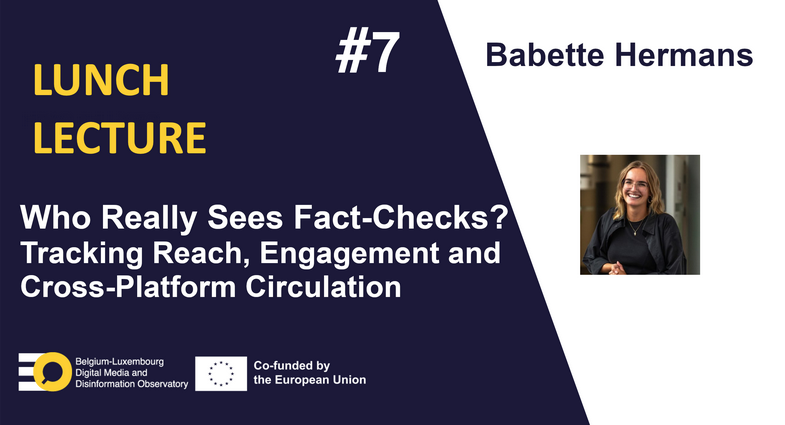 The next EDMO BELUX Lunch Lecture will take place on December 15th, 2025, at 13:00-14:00 CET. Join us for this webinar, where Babette Hermans will present new insights into how fact-checks circulate across social media platforms, who they actually reach, and what current patterns of engagement reveal about the effectiveness of dissemination strategies.